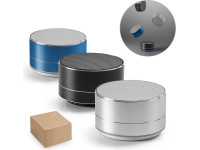 FLOREY. Portable 3W speaker with 3h battery life in recycled aluminium (100% rAL) and recycled ABS (100% rABS)