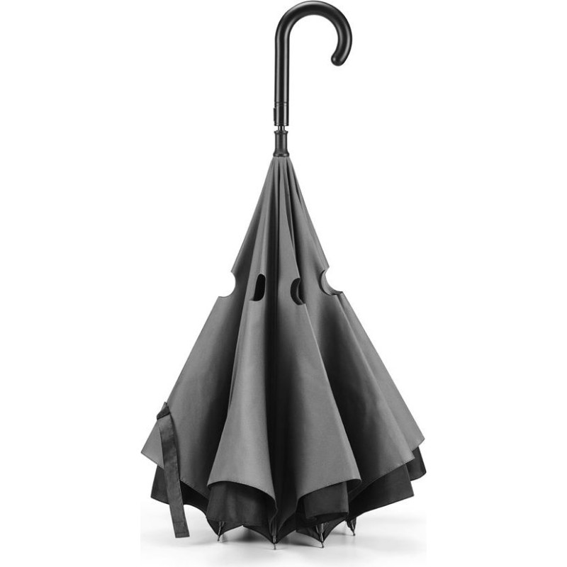 190T pongee reversible umbrella with double cover, metal handle and fiberglass ribs. This patented structure has manual opening and automatic closing. ø1050 x 790 mm