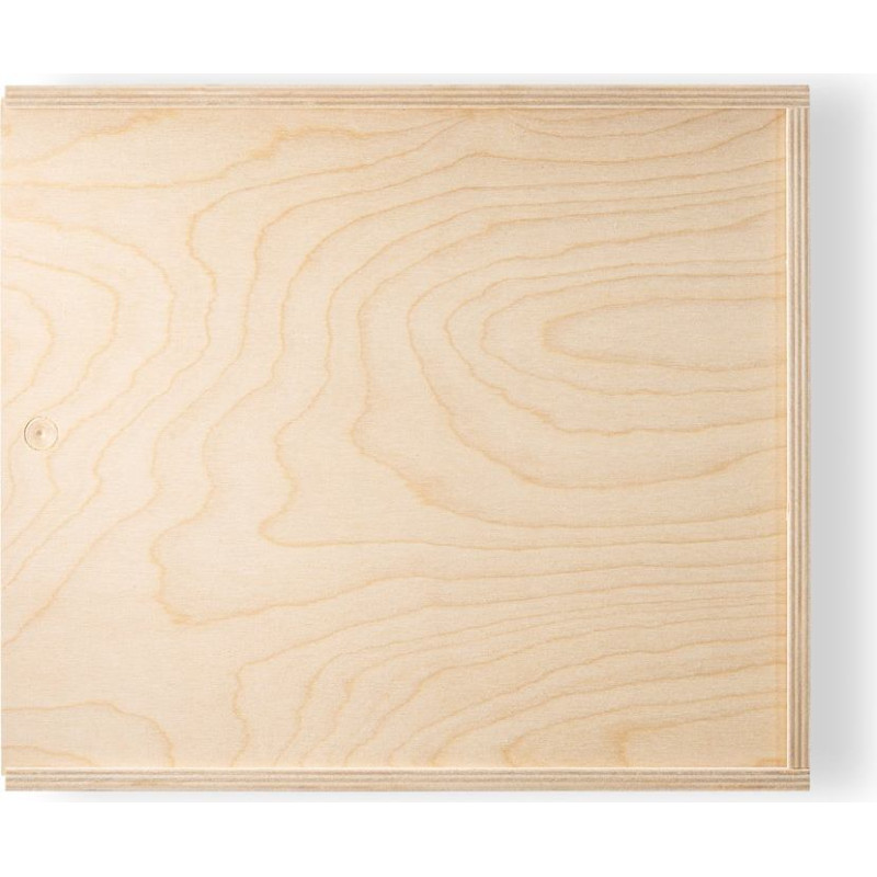 Plywood box with sliding lid, in the same material. Size L. Interior: 330 x 290 x 97 mm | Outside: 348 x 308 x 111 mm
