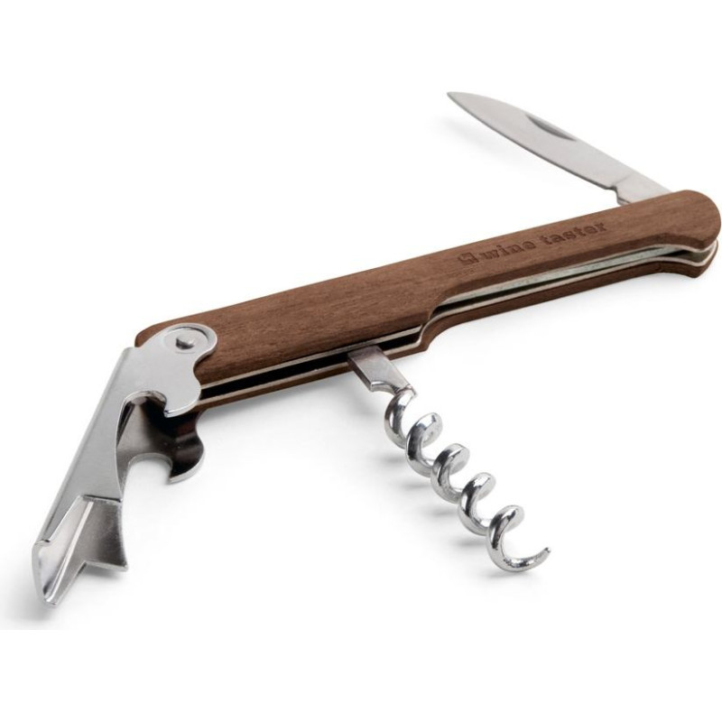 Wooden corkscrew with decapsulator and sommelier knife. 109 x 25 x 8 mm