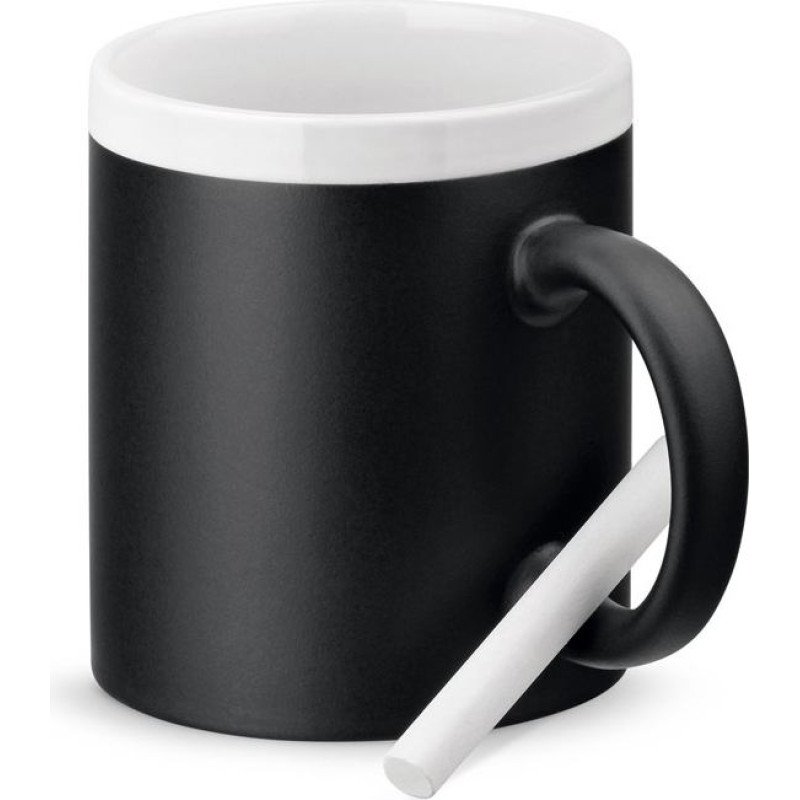Ceramic mug with capacity up to 360 mL. The exterior finish of this mug recreates the effect of the slate and allows you to write on it using chalk (included). Supplied in a box. ø81 x 96 mm | Box: 102 x 118 x 88 mm