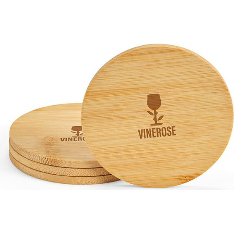 Christo is a set of coasters in bamboo with a diameter of 9cm and a thickness of 0.5cm. These coasters safeguard your surfaces. Each pack brings 4 units, ensuring you're well-equipped for every hosting occasion. Packed in an individual kraft box.