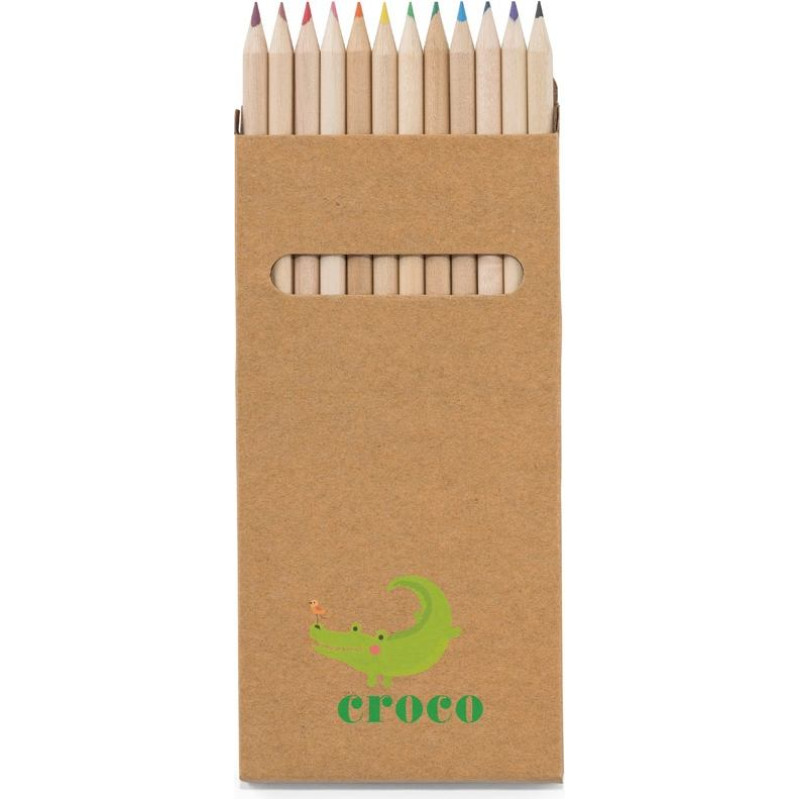 Plain Kraft paper box with 12 wooden colouring pencils. 90 x 180 x 9 mm