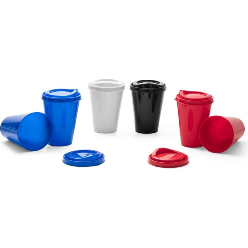 Single wall reusable PP cup with PP lid and capacity up to 430 mL. Made in Europe. ø87 x 116 mm