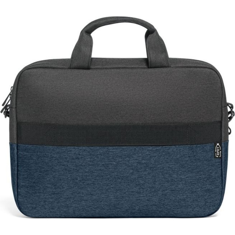 Padded laptop bag in 600D high-density recycled polyester. Composed of a main compartment with a pocket for a laptop up to 15". The briefcase has a zippered front pocket. The back has a trolley strap in case you need it. 380 x 280 x 60 mm