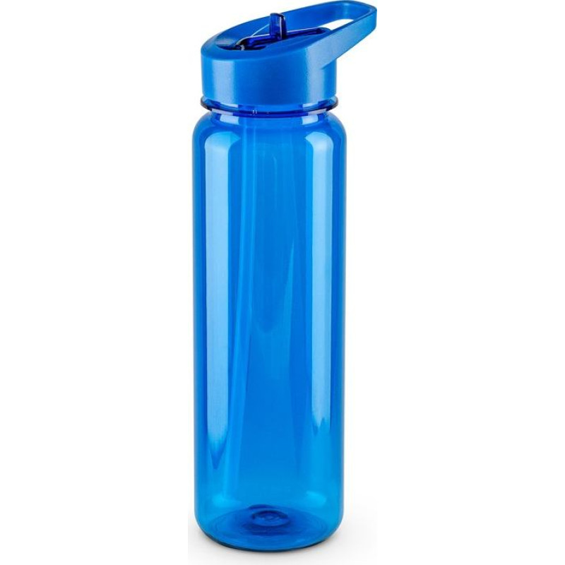 Sports bottle in recycled PET (100% rPET), with a translucent glossy finish. Lid with drinking fountain and internal straw. Capacity up to 750 mL. ø70 x 245 mm
