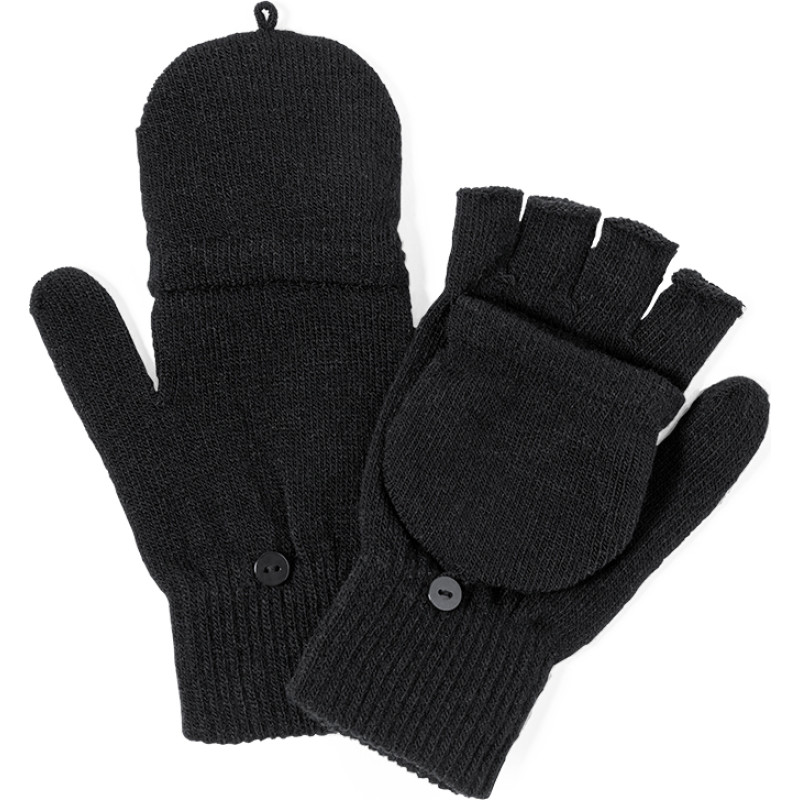 Useful pair of gloves made in warm, soft acrylic. With folding flap to turn them into mittens, perfect for protection from the cold while maintaining good manoeuvrability. One size fits all, for adults. Presented in an individual recycled bag.