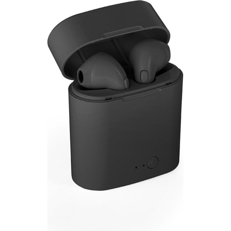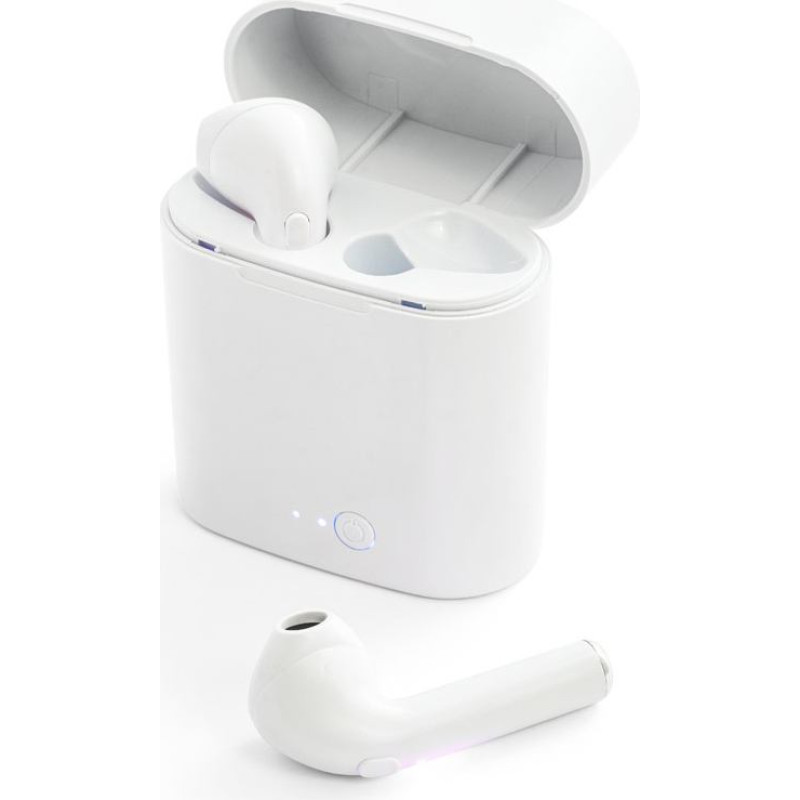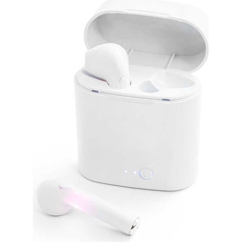 True Wireless ABS earphones with microphone and charging box of 250 mah. Autonomy up to 1'5h, frequency 20Hz-20KHz, 98 dB and impedance of 32Ω. Each earphone has a multifunction button. USB cable to charge. Supplied in a gift box. Headphone: 47 x 19 x 8 mm | Box: 55 x 64 x 26 mm