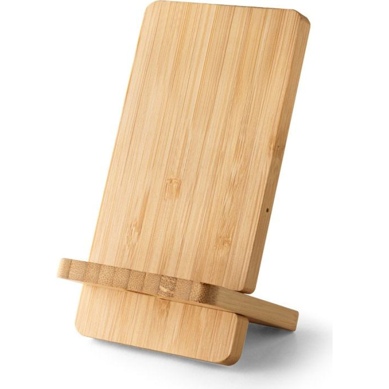 Smartphone stand with fast wireless charger, ideal for keeping your mobile phone ready to use at all times.Material: bamboo | Charging power: 15W | Includes: USB charging cable | Supplied: kraft paper gift box 140 x 80 x 8 mm