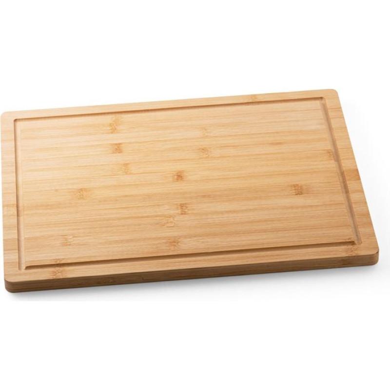 Bamboo cutting board with groove. Supplied with a kraft paper gift box. As the product is made from natural materials, the colour and the printing result may vary between products. 400 x 300 x 15 mm