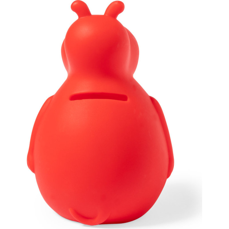 Cool hippo design money box, made of soft and resistant PVC, safe for children. With bottom lid and available in a wide range of colors.
