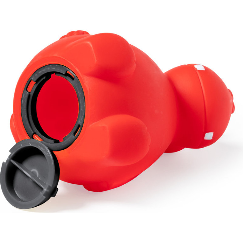 Cool hippo design money box, made of soft and resistant PVC, safe for children. With bottom lid and available in a wide range of colors.