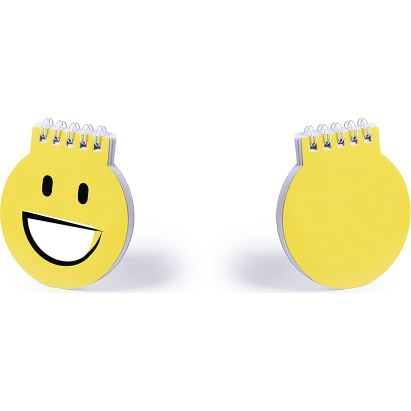 Notebook of cheerful emoji designs in eye-catching yellow color. With white rings, rigid cardboard covers in soft glossy finish and 40 blank sheets.