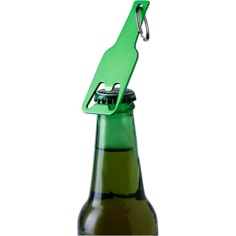 Bold design keychain opener with bottle design, in a varied range of vivd metallic colors. Especially designed for laser printing.