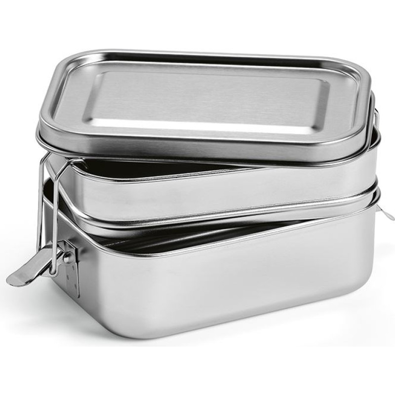 Picasso Lunchbox has a total capacity of 1240ml (1050ml net) with side buckle closure. Dual compartments allow you to take your favourite dishes to work or picnics. Available in shinny silver. Packed inside an individual kraft box.