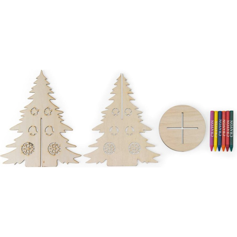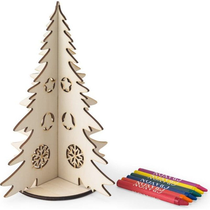 Collapsible wooden Christmas tree for coloring, made from FSC™ certified material and other controlled materials. Includes 6 crayons to paint the tree and be creative in your own way. Supplied in a 100% recycled envelope. As the product is made from natural materials, the colour and the printing result may vary between products. Mounted: 162 X 162 X 200 mm | Envelope: 180 x 210 mm