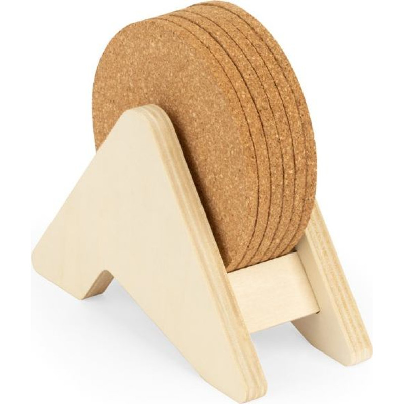 Plywood support with 6 cork coasters. Enjoy your drink avoiding marks on the table. As the product is made from natural materials, the colour and the printing result may vary between products. 140 x 92 x 78 mm