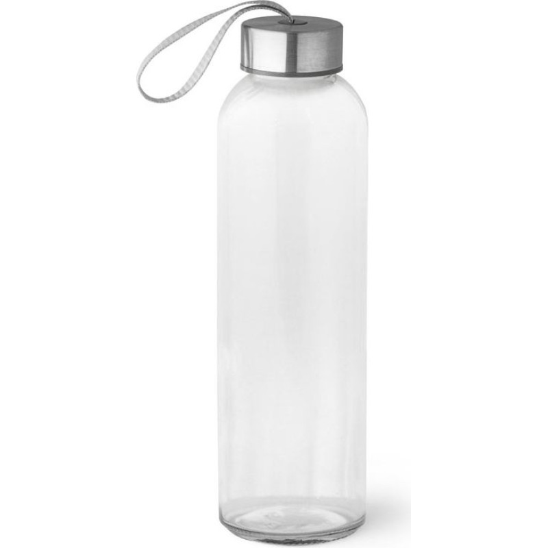 Glass and stainless steel sports bottle with a handle on the screw-on lid for easy transport. Volume-capacity 520 mL. Supplied with soft shell pouch. ø65 x 225 mm