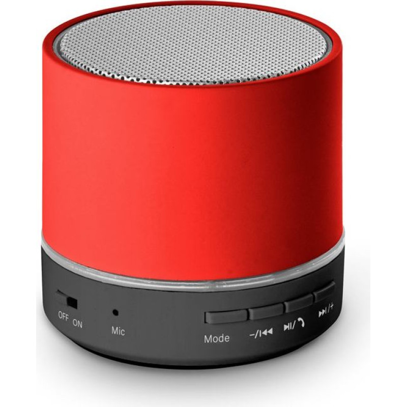 Portable, round-shaped speaker, perfect for accompanying you throughout your day. With approximately 4'5 hours of battery life and a built-in microphone. If no customisation is chosen, the grille is supplied loose inside the gift box. Once attached to the speaker, the grille cannot be removed again. Material: recycled ABS (100% rABS) | Wireless transmission: BT v5'3 | Inputs: micro SD card reader | Output: 3'5 mm AUX and automatic playback via USB-A | Sound power: 3 W | Capacity: 400 mAh | Features: hands-free calling, control the volume and playlist of your mobile device | Includes: USB-C charging cable | Supply: recycled kraft paper gift box, which can be reused as a smartphone stand ø60 x 58 mm | Box: 65 x 63 x 75 mm