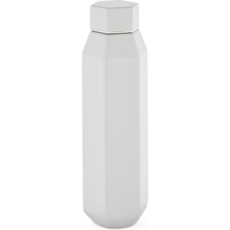 Hexagul a unique hexagonal shaped bottle. 530ml capacity (500ml net) made from recycled stainless steel. The double wall vacuum insulation keeps your drink hot for 5 hours and cold for 16 hours. Two smooth panels ensure your logo stands out and the leakproof lid protects your belongings. Neatly packed in its own sustainable kraft box.