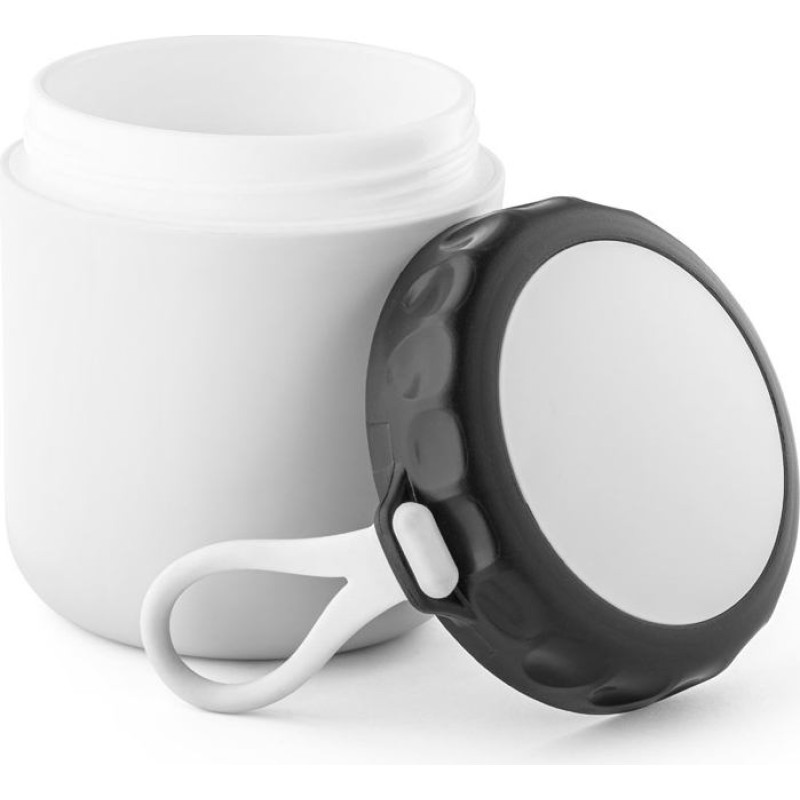 PP double-walled thermal container. With silicone carrying handle, ideal for meals. Capacity up to 380 mL. 90 x 105 mm