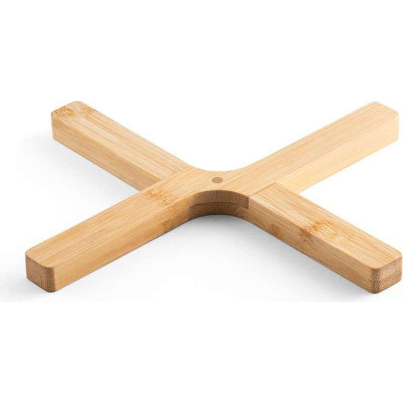 Folding bamboo pot stand. Supplied in kraft paper gift box. As the product is made from natural materials, the colour and the printing result may vary between products. Closed: 215 x 40 x 14 mm | Open: 180 x 150 x 14 mm
