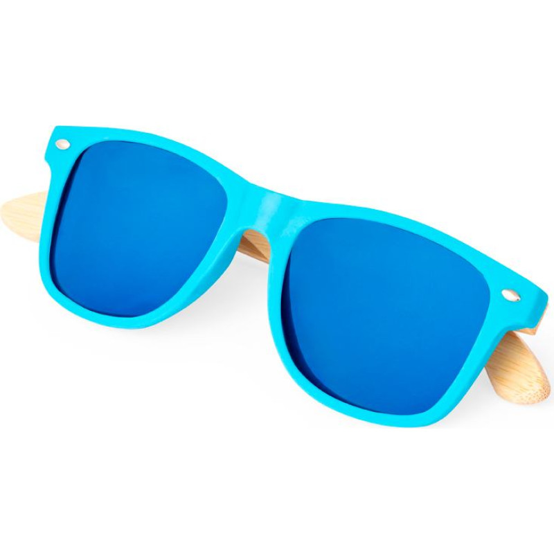 Bamboo sunglasses with UV400 protection. Coloured frame in durable PC material and bamboo arms. Mirrored AC (cellulose acetate) lenses, available in a range of colours. Presented in an attractive kraft paper bag.Materials such as bamboo encourage the use of natural raw materials, reducing pollutant emissions. It comes from a highly resistant and versatile plant with rapid growth and regeneration, making of it an excellent alternative to traditional wood.