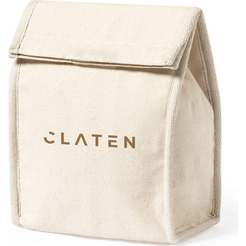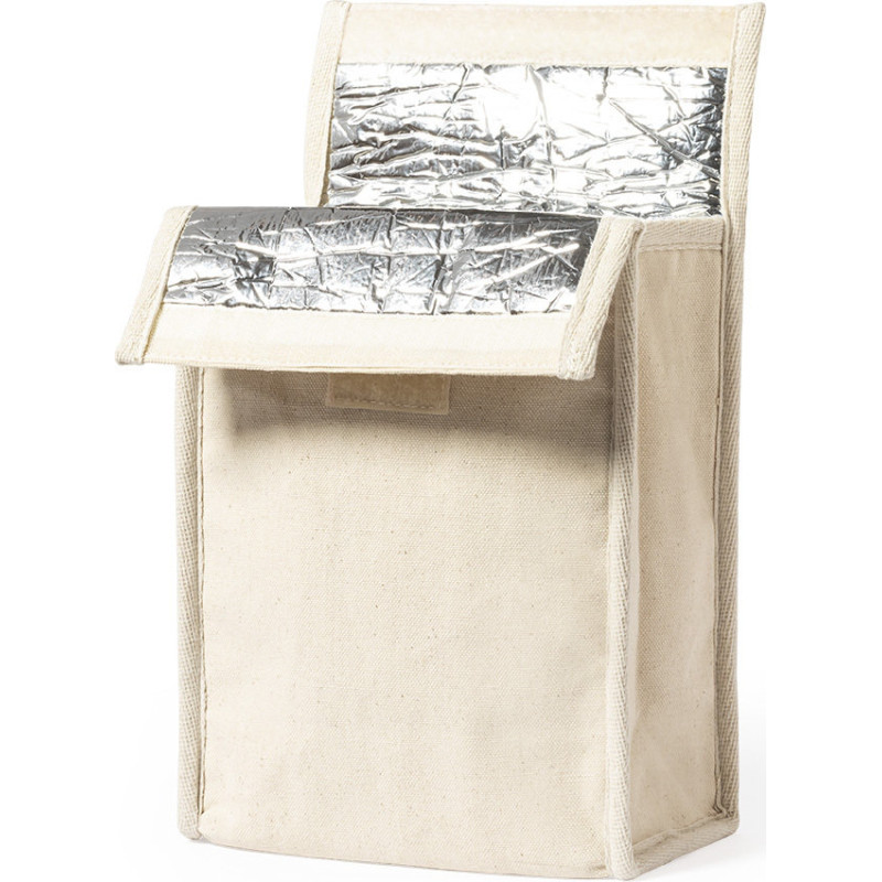 Thermal bag in durable cotton material 330g/m2. Main compartment with velcro closure and aluminum isothermal interior. Capacity 2,3l.