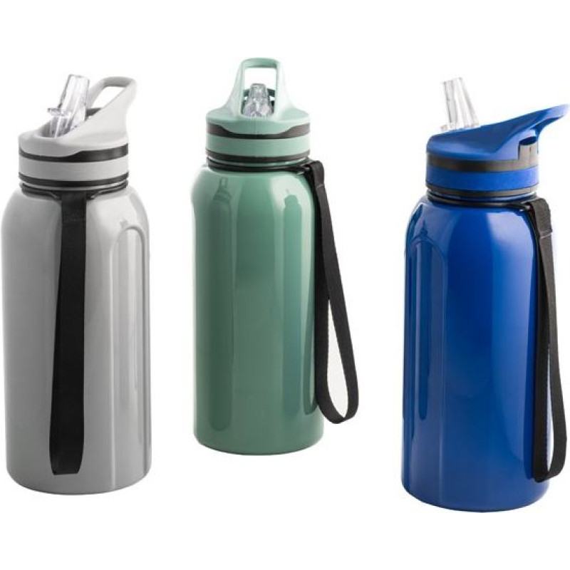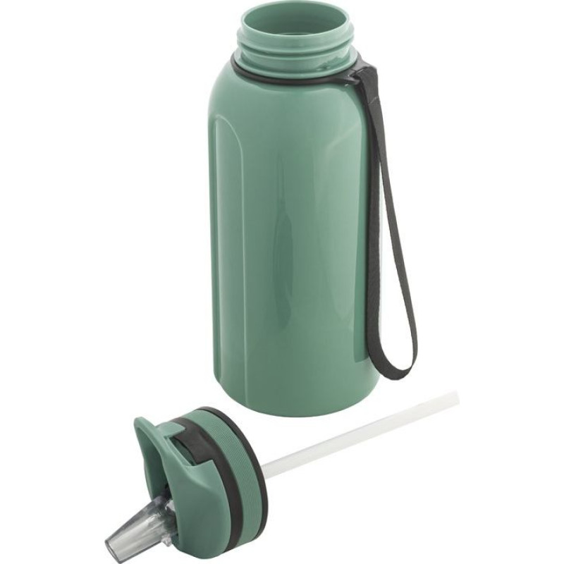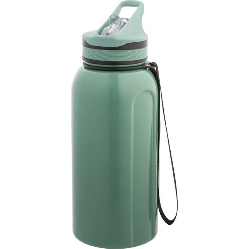 Sports bottle with internal straw, lid with drinker and handle for easy transport. Big capacity up to 1230 mL. Ø95 x 252 mm