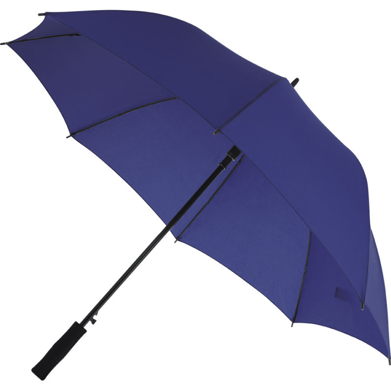 Windproof umbrella with a diameter of 120 cm, made from RPET 190T polyester material. With automatic opening and fiberglass ribs. EVA handle. The RPET material is made from recycled plastic, promoting the reuse of plastic waste and helping to sustain the planet.