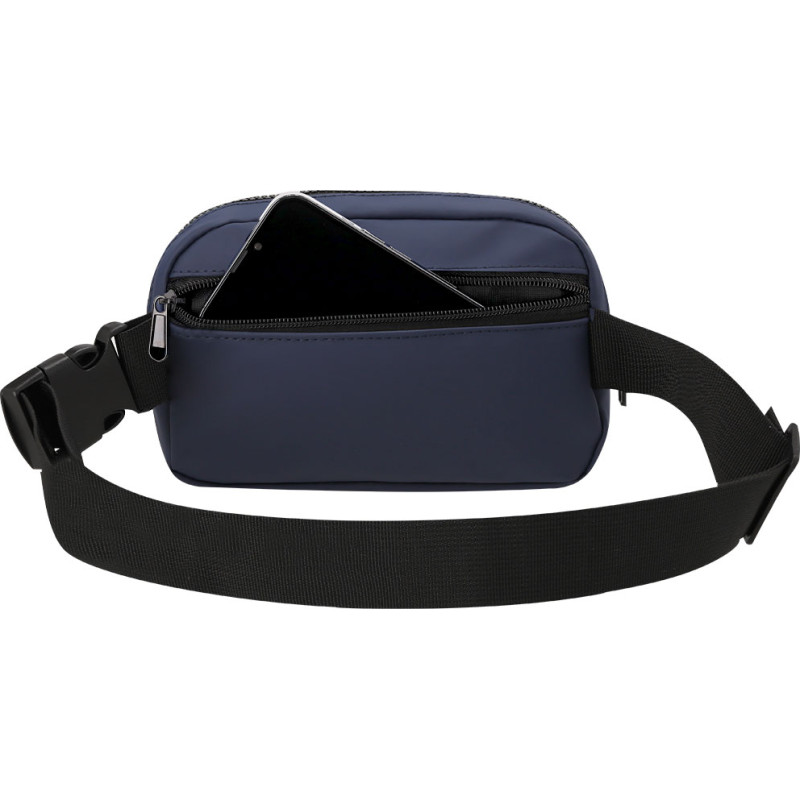 Belly bag design made from PU. Features a central pocket with zipper closure and adjustable strap with buckle closure. Additionally, it includes a rear pocket with zipper closure for added security.