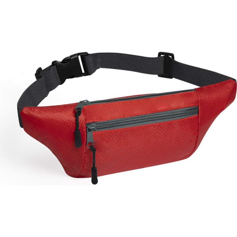Resistant ripstop material waist bag in honeycomb design. 2 zipper pockets with fabric pullerss for a comfy opening. Nylon, adjustable strap and buckle closure. Designed for sport and leisure activities.