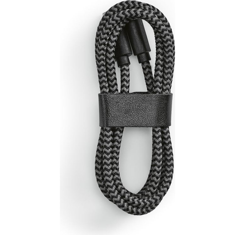 Ramanujan Cable 1m rPET fast charging cable. Seamlessly connecting USB-C to Lightning, Upgrade your tech with a sustainable twist. Tidy up with ease, includes a strap to keep your cable neatly folded. Each piece comes in its own eco-friendly kraft pouch.