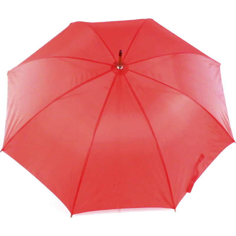 8-panel umbrella made of polyester. 105cm in diameter, with manual opening, black metallic ribs and Velcro fastening. Pole and handle in soft wooden natural colour finishing, with fabric available in a wide range of bright colours.