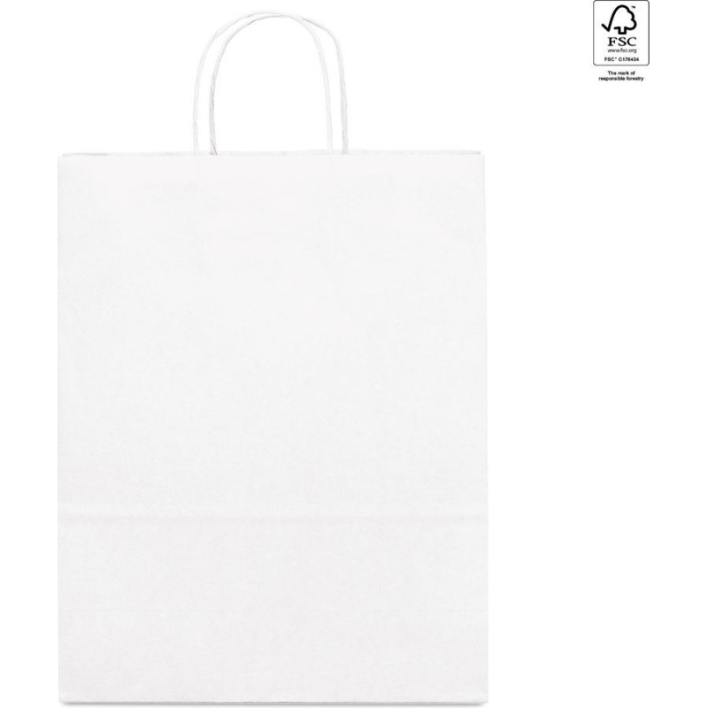 Kraft paper bag (90 g/m²) with twisted handle. Made in Europe. This product is made from FSC™ certified material and other controlled materials. 240 x 310 x 90 mm