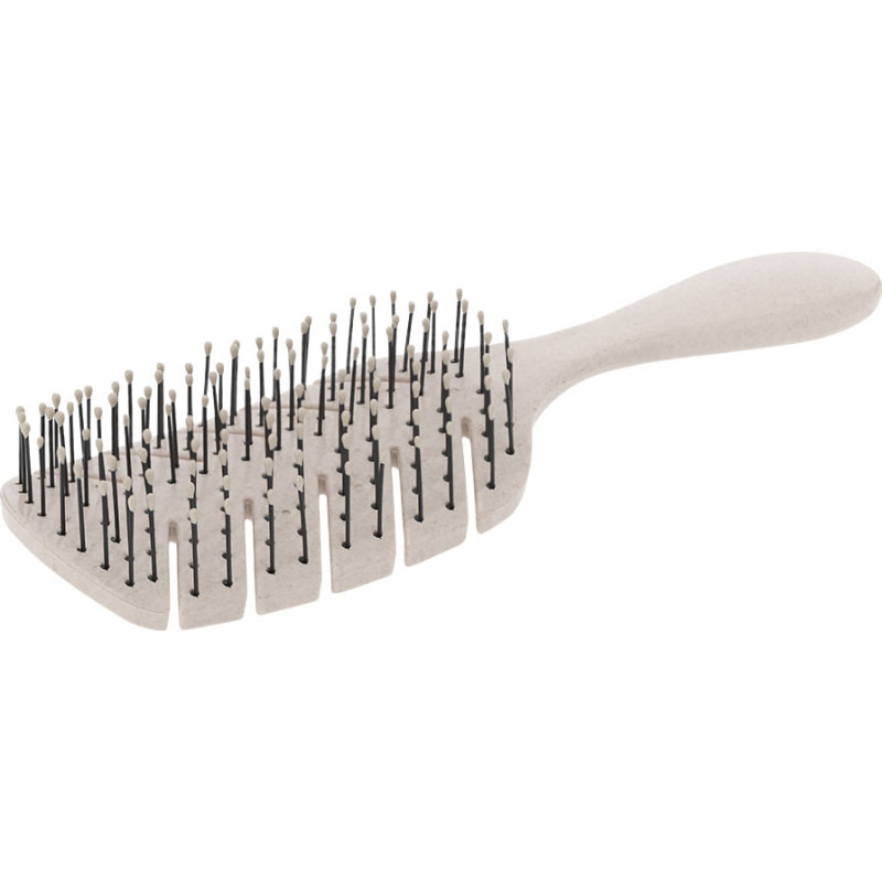 Detangling and Unruly Brush made of wheat straw. With a tangle-resistant system, flexible and durable that allows for detangling any hair type with maximum gentleness. With an ergonomic design thanks to its semi-curved shape and long bristles, it adapts perfectly to the contour of the head, facilitating the styling of a larger amount of hair in each pass.Wheat straw promotes the use of natural raw materials, thus reducing polluting emissions.