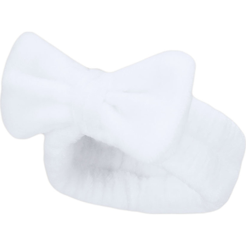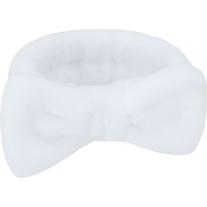 Crown-style headband, adorned with an elegant bow. Made from soft and stretchy polyester, ideal for facilitating facial cleansing routines.