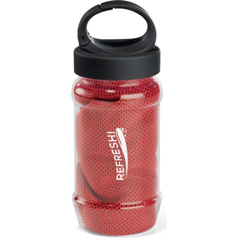 Set with a PP and PET bottle and a polyamide and polyester sports towel. Bottle with handle, practical to be taken anywhere and capacity up to 440 mL. Refreshing towel that, when wet, stays cool for a few hours. If it warms up, just shake it, reactivating its freshness. The towel is reusable and washable in the dishwasher . Towel: 300 x 800 mm | Bottle: ø65 x 183 mm